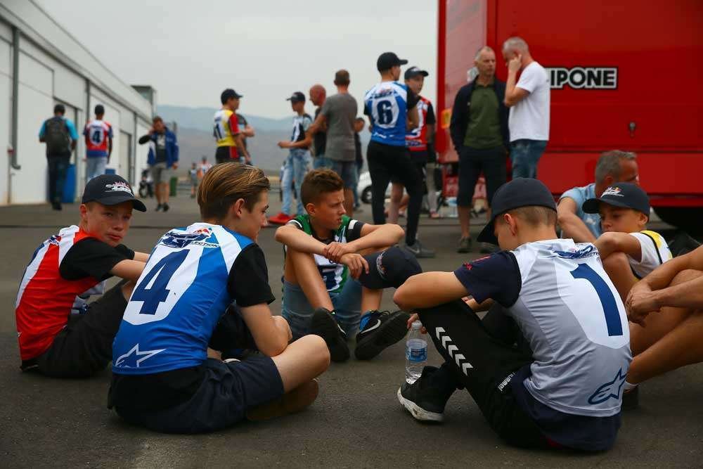 Con el #2 y la camiseta azul, vemos a Nicolás Hernández, quien será uno de los pilotos que debutará en el 2018 con la Copa Red Bull MotoGP.